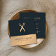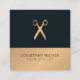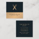 Modelo moderno de cartão de visita com fundo de listra falso dourado/cinza escuro e padrão de tesoura. Design simples e elegante. Perfeito para estilista de cabelo, salão de beleza.