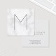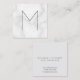 Cartão de visita do Mármaco Branco Elegante moderno Monograma Quadrado com grande monograma no estilo de fonte sans moderno da cinza em fundo de mármore com informações de negócios no verso. Perfeito para designer, fotógrafo, estilista de moda, consultor e muitas outras profissões.