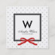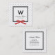 Cartão De Visita Quadrado Monograma de Fita Vermelha Bolinhas Branca Moderna