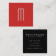 Cartão De Visita Quadrado Monograma Mínimo Moderno Preto Vermelho