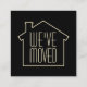 Compartilhe as notícias alegres da sua nova casa com um elegante cartão de anúncio preto e ouro em movimento. Todo texto na frente e atrás pode ser personalizado ou excluído. Altere "Nós nos movemos" para "Eu me movi" ou outro texto, se desejar. Encoste-se perfeitamente em convites para amigos e familiares, em notas de agradecimento ou em cartões de natal. Design apresenta um esboço minimalista da casa na frente e uma simples mensagem de tipografia moderna atrás. Observe que o ouro na placa é uma cor impressa não metálica, e não uma folha. Esta mudança de cartão de inserção de endereço é uma forma na moda para apresentar amigos e familiares à sua nova casa. A silhueta de uma casa torna-a especialmente perfeita para um arquiteto, empreiteiro, designer de interiores, agente imobiliário, decorador de casas, ou qualquer pessoa interessada no comércio de edifícios, design de casas, ou arquitetura.