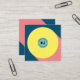 Cartão De Visita Quadrado Músico moderno amarelo-azul retrô dj vinil