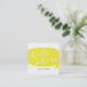 Cartões de visitas amarelos modernos com as palavras "olá! lá" em uma pia batismal elegante do roteiro.
