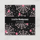 Um cartão de visita com um padrão perfeito e fofo com teias brancas e aranhas cor-de-rosa.