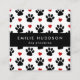 Cartões de visitas bonitos, divertidos e adoráveis com patas negras e corações vermelhos. Design moderno e moderno, perfeito para treinadores de cães, marinheiros, caminhoneiros de cães, babás de estimação, compradas de estimação e veterinários.