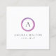 Modern business card featuring a simple yet professional design with your monogram inside of a pink and purple circle. Use the template to generate a QR code or remove it in the design editing tool.