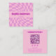 Cartão De Visita Quadrado Pink Retro Groovy Wavy Checkered with QR Code