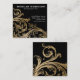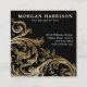 Cartões de visita pretos e dourados com belo redemoinho barroco damasco dourado em um fundo de cor escolhida por si. Estes cartões de visita pretos e dourados são facilmente personalizados com seus detalhes na frente e no verso. Você pode mover, redimensionar e remover o redemoinho dourado conforme necessário.