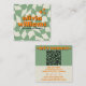 Cartão De Visita Quadrado Retro Green Orange QR Code Groovy Checkered Boho