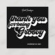 Retro preto e branco "Obrigado por ser ranzinza" as inserções de pacotes nas mídias sociais.