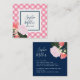Cartão De Visita Quadrado Rosas Rosa, Gingham Floral e Rosa