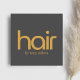 Modelo de cartão de negócios personalizável SQUARE elegante com fundo de cinza escuro e cor de texto/ouro de cabelo em negrito. Design minimamente elegante, perfeito para salão de cabelo, cabeleireiro, cabeleireiro.