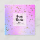 cartões de visitas elegantes apresentam pontos falsos de confete em ouro, fundo holográfico e fonte elegante de caligrafia.