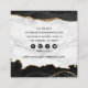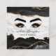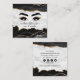 Cartões de visitas de maquiagem elegantes com um fundo de mármore de tendências, brilho preto e dourado, cílios femininos glamourosos, um script de assinatura giratória e um modelo de texto profissional que é fácil de personalizar.