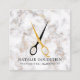 Cartão De Visita Quadrado Tesoura Preta e Dourada de Cabelereiro