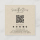 Este design de cartão de visita apresenta um fundo de papel de artesanato com tipografia personalizável e um código QR. Pequena tesoura preta é um cartão perfeito para um cabeleireiro. Simples design moderno.