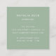 A natureza elegante inspirou o design em um formato quadrado exclusivo que contém seu nome e nome comercial, título ou ocupação cercados por uma coroa botânica verde. Adicione as informações de contato do cheio, incluindo horas, se aplicável, ao lado inverso em branco a verde primavera. Exemplo mostrado para técnicos de sobrancelhas ou estéticos.
