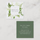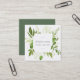 Os cartões de visitas botânicos em forma quadrada única apresentam seu nome ou nome de empresa rodeados por uma borda redonda de folhas botânicas de cor d'água pintadas em tons ricos de verde. Adicione as informações de contato do cheio ao fundo em branco na floresta verde. Uma escolha única e elegante para floristas, designers florais, design paisagísticos ou qualquer negócio com foco verde ou de bem-estar.