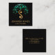 Cartão De Visita Quadrado Yin Yang tree - Folhas de malaquite e Dourado