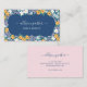 Belo cartão de visita floral em azul profundo com seu nome em um bonito roteiro fino e seu título em letras elegantes enquadrado por uma miríade de flores amarelas, flores brancas, flores cor-de-rosa e flores azuis. No outro lado do cartão cor-de-rosa claro, adicione seu nome e informações de contato. cartão de visita para um artista de maquiagem, cabeleireiro, artista de lash, artista de unhas, planejador de eventos, design de interiores e muito mais.
