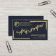 Um elegante cobrir azul escuro é acentuado por um índice de gráficos financeiros dourados e encapsulado por uma borda retangular na moda dourada.