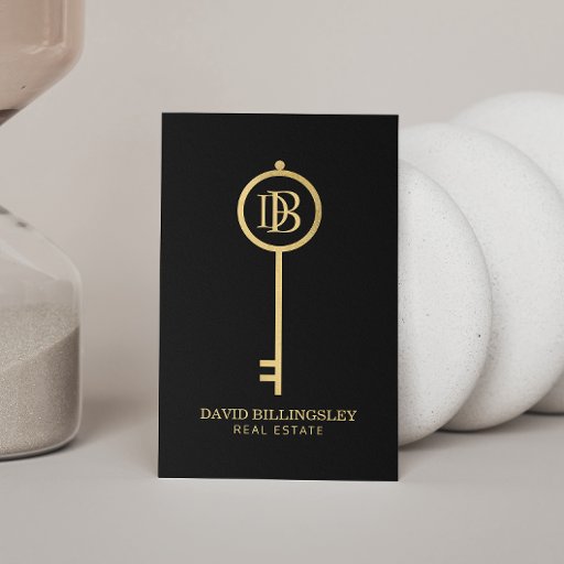 Cartão De Visita Realetor de Monograma de Chaves de Esqueleto Doura