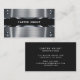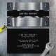 Este cartão de visita profissional apresenta um design elegante em metal prateado fosco acentuado com detalhes rebitados para um estilo industrial ousado. A faixa preta limpa destaca seu nome ou empresa, tornando fácil se destacar. Perfeito para profissionais da construção, engenharia, contratação e outros ofícios. Um design forte e confiante ideal para aqueles que desejam causar uma impressão duradoura.