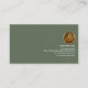 No verso, num cobrir verde escuro, os detalhes estão na parede direita do cartão. O logotipo dourado está no topo, seguido do seu prestígio nome, dos seus contatos e de uma legenda de slogan para divulgar seus serviços.