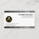 No canto superior está seu nome prestigioso, cargo e legenda de slogan. Você pode mudar os comentários de legenda para o slogan para atender às suas necessidades de serviço. Perto da base está o logotipo do motorista dourado que você pode usar com seus detalhes de contato.