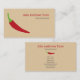 Um simples cartão de visita com uma ilustração de pimenta vermelha sobre fundo castanho claro e informações personalizáveis para empresas ou atividades como tacos ou restaurantes mexicanos, marca de empresas, consultor, restauração, fazendeiro, etc.