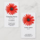Um na moda claro e atraente modelo de cartão de negócios com um atraente motif de flor "Diabo Vermelho" Africano (Arctotis × hybrida). Detalhes principais da empresa na frente, com nome e contato pessoal na parte traseira, com o mesmo motivo e estilo.