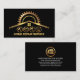 Um cobrir preto apresenta um telhado de ouro criativo com um sol de ascensão (serra elétrica) com um conjunto de ferramentas de ouro por baixo, ou seja, martelo, furadeira manual, pincel de rolo e espadas de jardim. Cada uma dessas ferramentas pode representar parte do trabalho ou serviço que você pode oferecer, por exemplo, a serra elétrica pode representar carpintaria, telhado para telhados, martelo para reparos domiciliários, balde para reparos mecânicos caseiros, pincel para pintura e, por fim, espadas para jardinagem paisagística. Cada representação de ferramentas é deixada à sua própria interpretação. Perto da base do cartão está o nome comercial. No verso, o logotipo da paisagem dourada que você pode usar está no topo seguido pelo nome comercial, detalhes de contato e uma opção de slogan para divulgar seus serviços. Um design excelente para a construção e para as empresas de mão de obra.