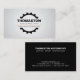Seu nome ou nome comercial está centrado em uma engrenagem automotiva aberta para criar um logotipo exclusivo para sua empresa ou marca pessoal neste modelo de cartão de negócios personalizável. © 1201AM CREATIVE