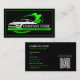 Reparo Automóvel Profissional, Cartão de visita Mecânico Automático. Com um design de carro elegante. Verde e Preto. Personalize e adicione seus detalhes comerciais. Adicione seu código QR ao seu site.