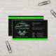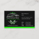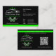 Reparo Automóvel Profissional, Cartão de visita Mecânico Automático. Com um design de carro elegante. Verde e Preto. Personalize e adicione seus detalhes comerciais. Adicione seu código QR ao seu site.