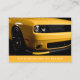 Cartão de visita moderno para uma empresa de decantação automática, empresa de limpeza de carros, serviço de reparo de carros ou compro de carros - com um carro músculo amarelo clássico. Modelo de texto totalmente personalizável!