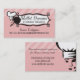 Cartão de visita para um cozinheiro chefe pessoal ou privado, o fornecedor ou a restauração, ou o outro cozinhar, comida, ou pro culinário caracterizando um cozinheiro chefe da mulher com chapéu do cozinheiro chefe, frigideira ou frigideira, corações de flutuação e placa de identificação extravagante. Escolha sua própria cor do fundo a seu favorito.