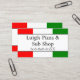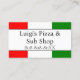 Este cartão de visita colorido apresenta uma imagem da bandeira italiana impressa em ambos os lados. Uma amostra de nome de restaurante italiano ou pizzaria é impressa no topo, seguida de um número de telefone. A parte traseira contém informações de contato adicionais, bem como uma lista curta de produtos. É perfeito para um deli, restaurante, compro de pizza ou outros negócios italianos.