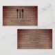 Um cartão de visita da indústria de comidas com um design de fundo inspirado em madeira na parte frontal e traseira. A frente apresenta uma ilustração preta de uma colher, uísque e espátula. Personalize o texto na frente e atrás com seu nome e informações de contato.