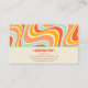 Uma Vintage retro Linhas onduladas coloridas psicodélicas cartão de visita. Isso apresenta linhas onduladas de abstrato boho feitas à mão com cores azul e laranja e castanho e creme bege. Ele tem anos setenta nostálgicos e vibrações e cores e fontes entaladas na década de 60. Com nome e profissão personalizáveis. Perfeito para marcas de pequenas empresas.