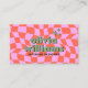Cartão De Visita Retro Pink Orange Boho Groovy Checkered Unique