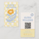 Cartão De Visita Retro Soft QR Code Boho Groovy Checkered Floral