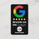 Um simples Cartão de visita preto personalizado para ser uma oportunidade única e inteligente para que você peça aos seus clientes que deixem uma revisão de cinco estrelas para o seu compro no Google. Adicione seus detalhes, Todo estilo de texto, cores, Aumente sua presença online no Google Aumente sua reputação e visibilidade online no Google. Mais revisões significam mais confiança e credibilidade para sua empresa.