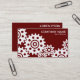 Um modelo de cartão de negócios com um arranjo de engrenagens. Nome da empresa e tipo de negócio na frente, com nome e outros dados de contato no verso. O design pode ser personalizado de várias maneiras.
