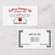 The perfect business card for anything bowling related! Features a front and back side with easy to update text. The front has a design with a bowling score card frame and bold text that reads "Rolling through life one frame at a time" coupled with pins and a red bowling ball. Beneath this is your name. The back features your contact information inside a checkered frame.