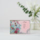 Elegante, clássico, vibrante e clássico design floral. Rosas vermelhas, cor-de-rosa, flores azuis com uma pomba branca carregando uma letra numa paisagem marinha.