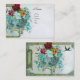 Elegante, clássico, vibrante e clássico design floral. Rosas vermelhas, cor-de-rosa, amarelas, flores azuis com carregando de engolir uma letra em uma paisagem marinha.