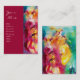 Mulher loira sofisticada com máscaras de penas, ouro cintilante, tecidos de fúcsia, fantasias de bolas mascaradas barrocas com penas e gondolas. .Pintura aquosa figurativa contemporânea com cores brilhantes em vermelho, amarelo, laranja, azul, rosa, faíscas douradas inspirada no Carnaval de Veneza e máscaras venezianas.Este cartão legal e artístico é perfeito para cabeleireiro, estilista de cabelo, artistas teatrais, figurantes, designers de roupas, proprietários de butiques, atrizes de teatro, modelos, cosméticos, perfumes compras pessoais, consultores de armários, designers de moda, modista, indústria de entretenimento e outras profissões criativas.