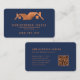Help your roofing business stand out from the crowd with this bold, eye-catching navy blue and copper business card featuring rounded corners. The copper faux brushed metal roof logo is paired with copper-colored text to highlight your business name, contact information and other details. A QR code on the back takes customers and clients to your website.