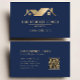 Help your roofing business stand out from the crowd with this bold, eye-catching navy blue and gold business card. The gold faux brushed metal roof logo is paired with gold-colored text to highlight your business name, contact information and other details. A QR code on the back takes customers and clients to your website.